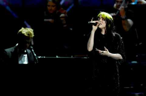 Billie Eilish interpretando No Time to Die en los Brit Awards